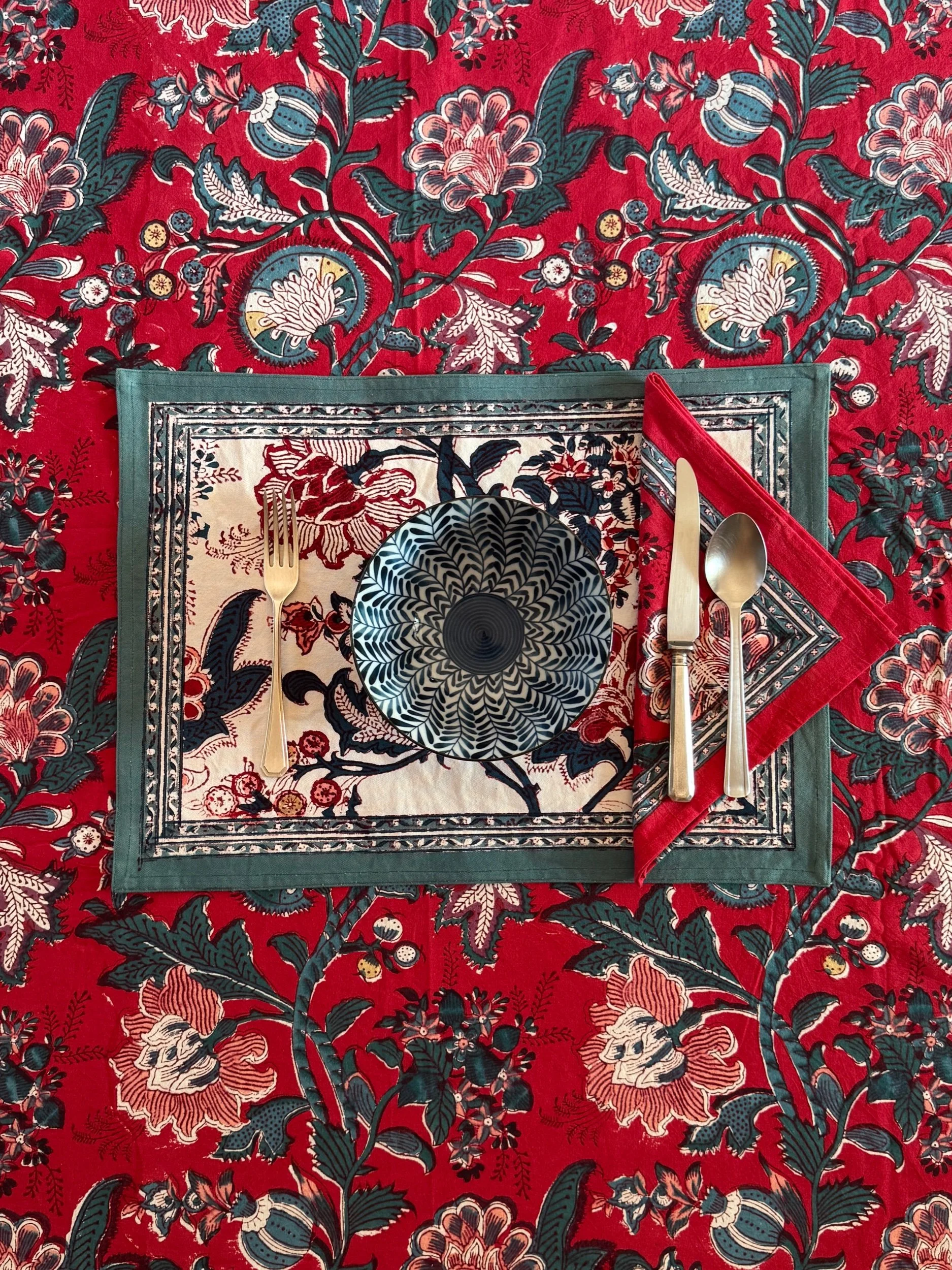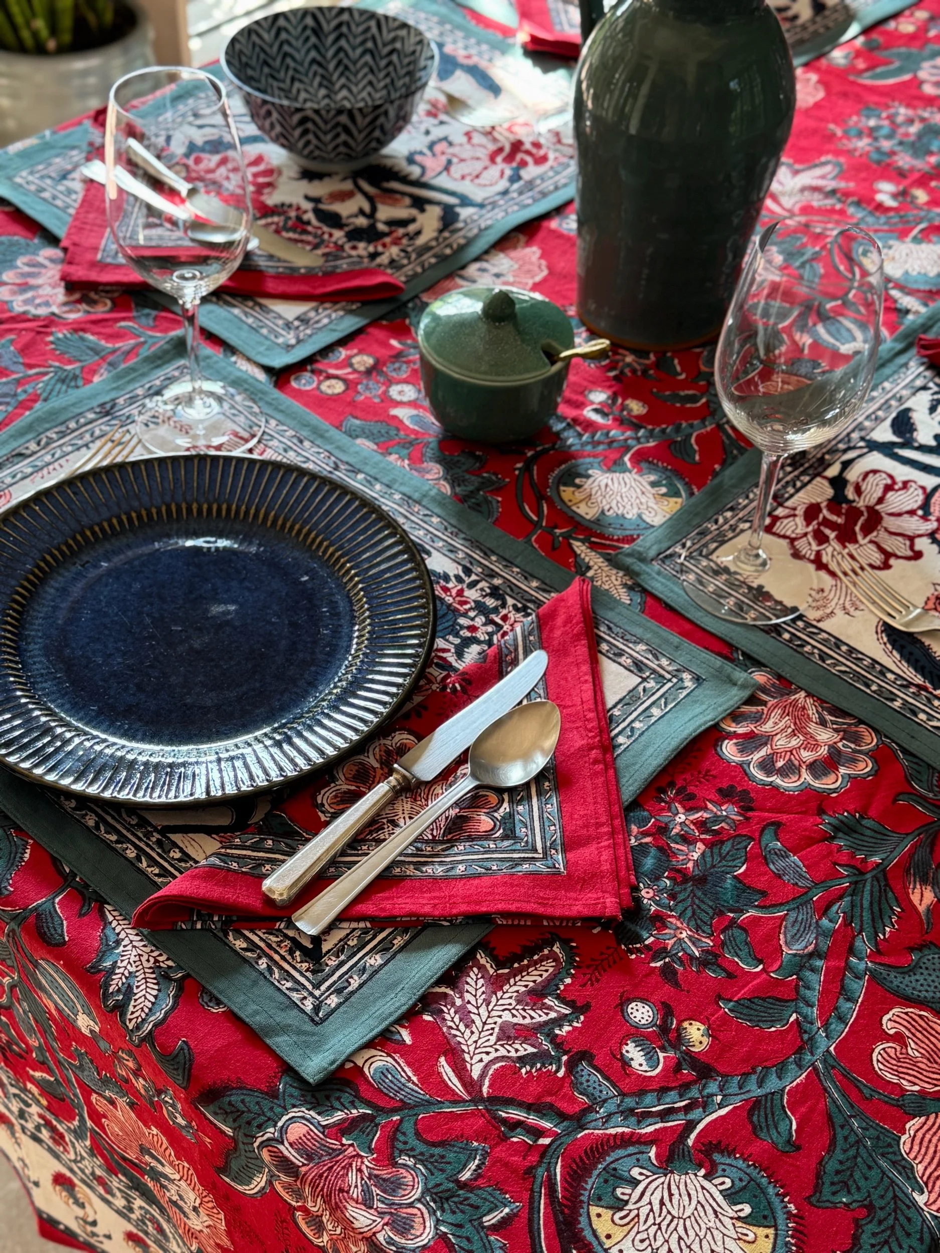 ‘chantilly red’ dining set Shop Now ‘Indienne leaf’ dining set Shop Now ‘Budapest Grenadine’ Bedding Shop Now