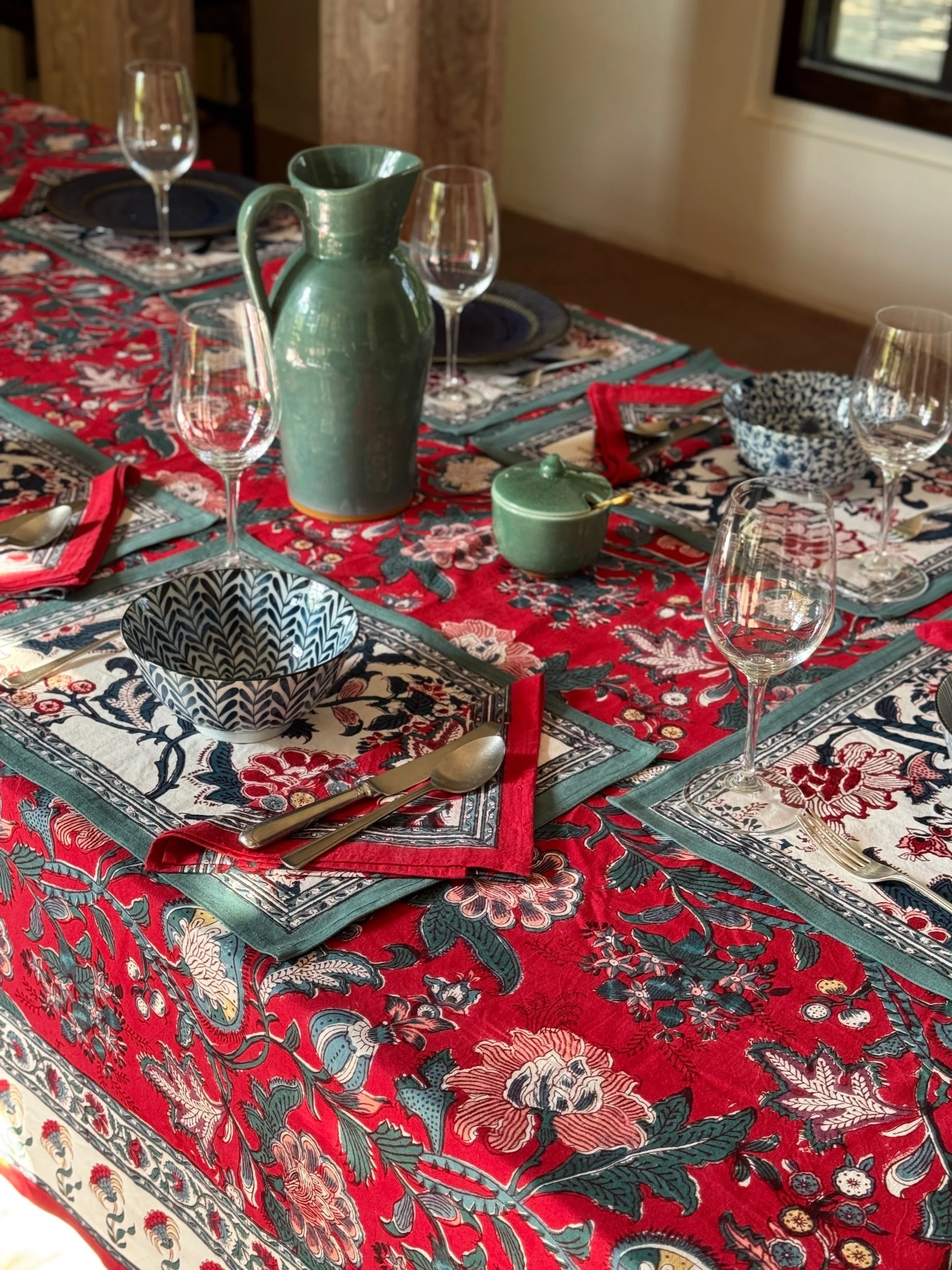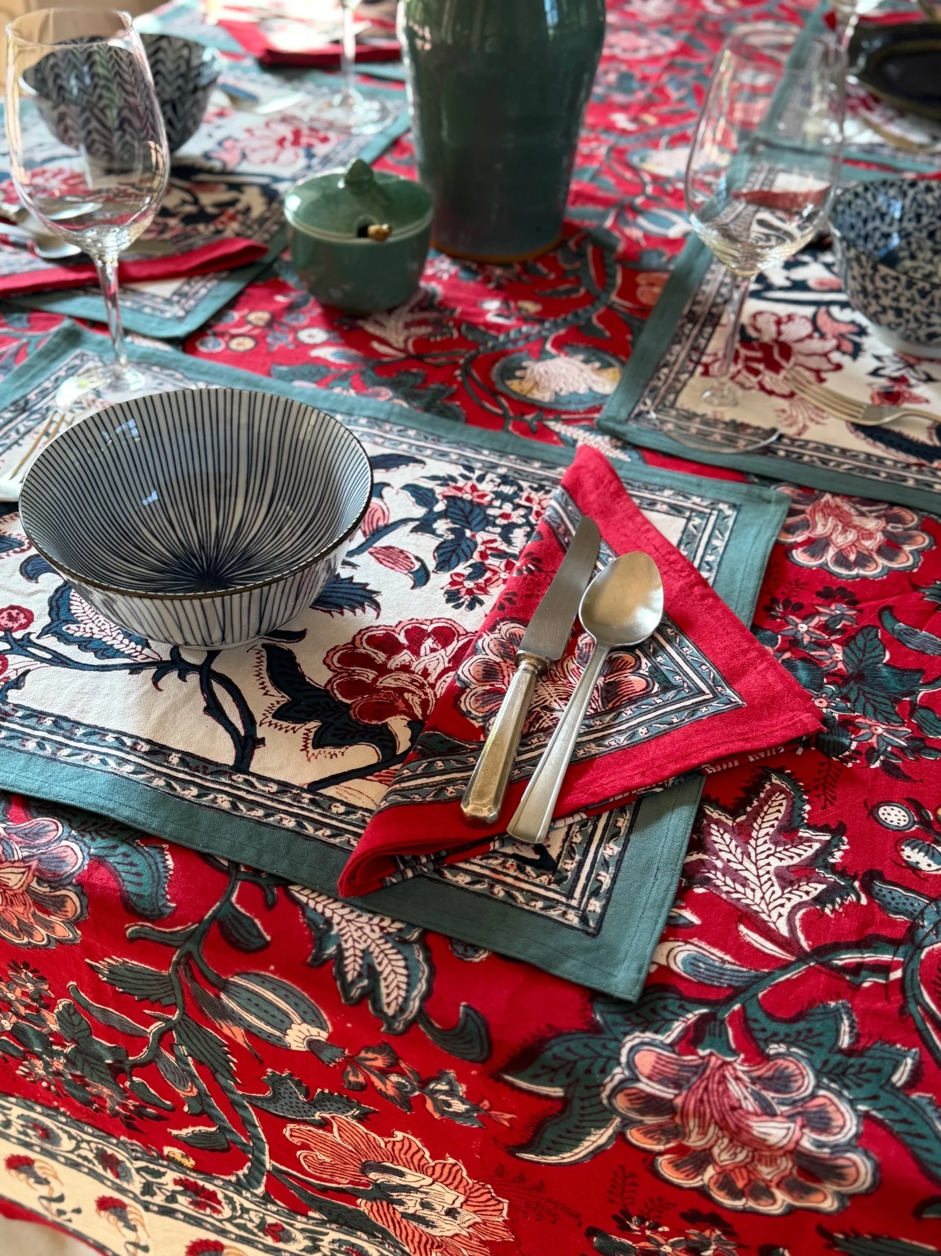 Categories: All Home furnishings Quilts & Cushion Covers Dining & Picnic Blankets Women's clothing Dresses Kaftans Kimonos Maisy Shorts Men's clothing Accessories & Stationary Scarves Card sets Bags Washbags All | Home furnishings | Women's clothing | Men's clothing | Accessories & Stationary | Chantilly Red Dining Set from £65.00 Indienne Leaf Dining Set from £65.00 Swedish Vine Kimono £65.00 Sold Out Shiraz Red Kimono £65.00 Sold Out Budapest Grenadine Cushion Cover from £20.00 Budapest Flowers Sundress £85.00 Twist Paisley Dress Sale Price: £68.00 Original Price: £85.00 Sale Islemer Buti Tablemat £15.00 Islemer Buti Napkin £12.00 Lava Jaal Card Set £15.00 Maroon Pineapple Buti Card Set £15.00